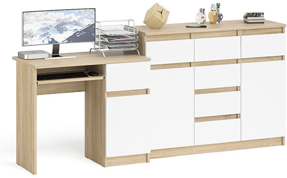 Наименование производителя | Мори Стол компьютерный МС-1 правый + Комод МК1200.4, цвет дуб сонома/белый, ШхГхВ 210,4х50х94 см., выдвижной ящик справа, НЕ универсальная сборка |