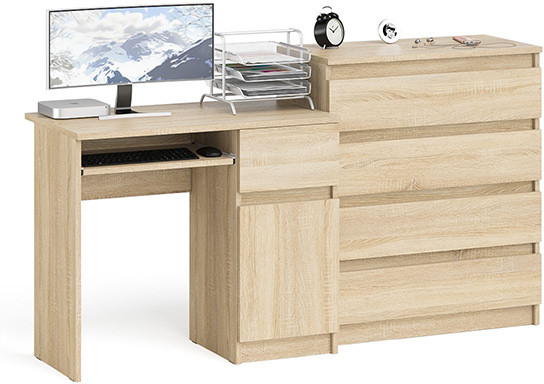 Наименование производителя | Мори Стол компьютерный МС-1 правый + Комод МК800.4, цвет дуб сонома, ШхГхВ 170,4х50х94 см., выдвижной ящик справа, НЕ универсальная сборка |